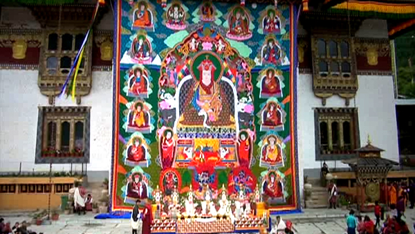 This is the largest ever Thongdrel of Tertoen Pema Lingpa built in the country. The 42-feet-tall applique was built over 10 months time.