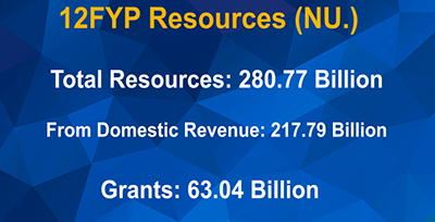 The current five year plan (12th FYP)’s total budget outlay is estimated at Nu 310.02 bn. This is an increase of 38 per cent compared to the previous plan (11th FYP).