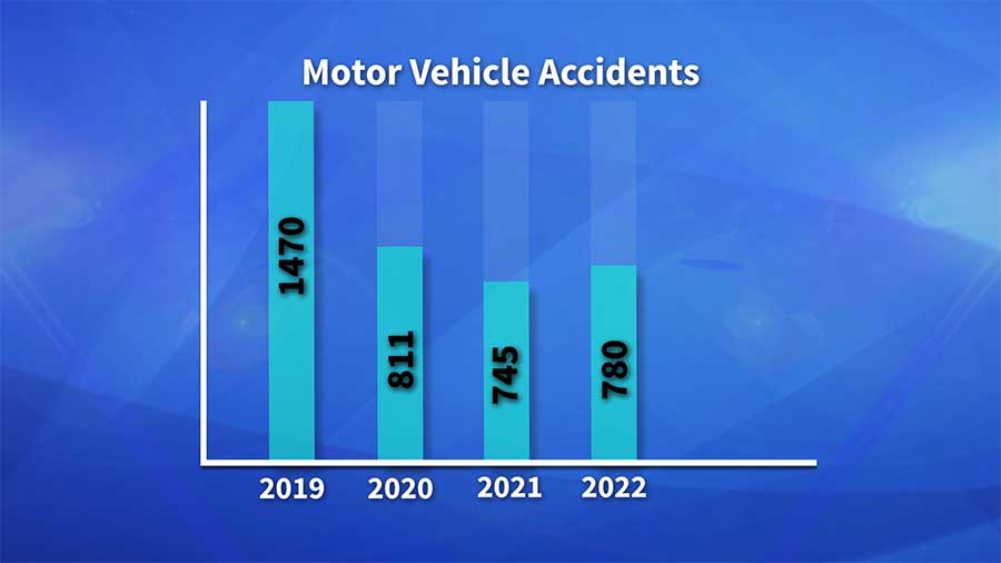Records with the police show that more than half of the accidents involved single vehicles. Nearly 500 cases were single-vehicle accidents, while nearly 200 accidents were from two-vehicle collisions. And there were nearly 40 cases of vehicles hitting pedestrians last year.