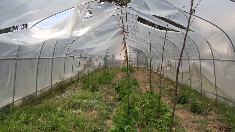 This greenhouse was set up in August last year. It has not even been a year yet and the plastic film started to get damaged last month.