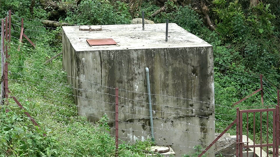 This is the new reservoir tank for Riserbu Chiwog, located above their village. Pipelines for more than 20 households are now connected directly to the tank.