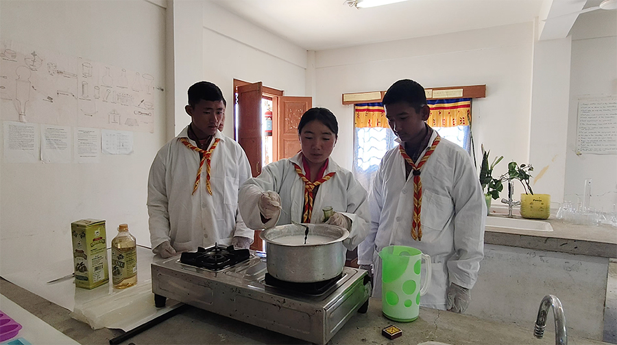 According to the school’s health record, about 70 per cent of the students reported skin-related problems last year due to a lack of proper soap. With soap now made in the school, Martshala Middle Secondary School is planning to supply their product to nearby boarding schools.