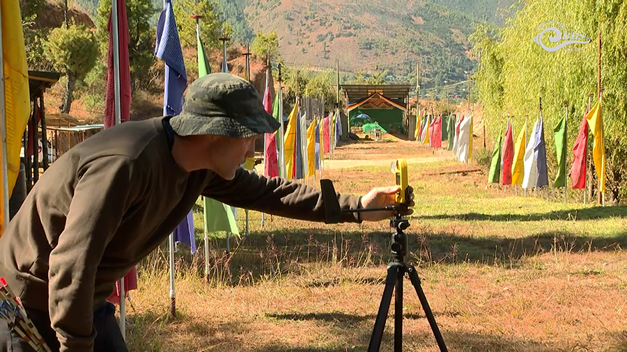 Now in Bhutan, he is conducting test shots using a shooting machine. He takes measurements three times a day, from early morning to the peak afternoon.