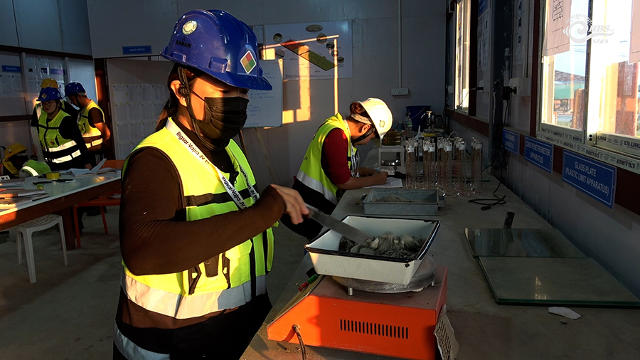 At the on-site laboratory, staff conduct soil density tests to ensure the runway meets international standards.