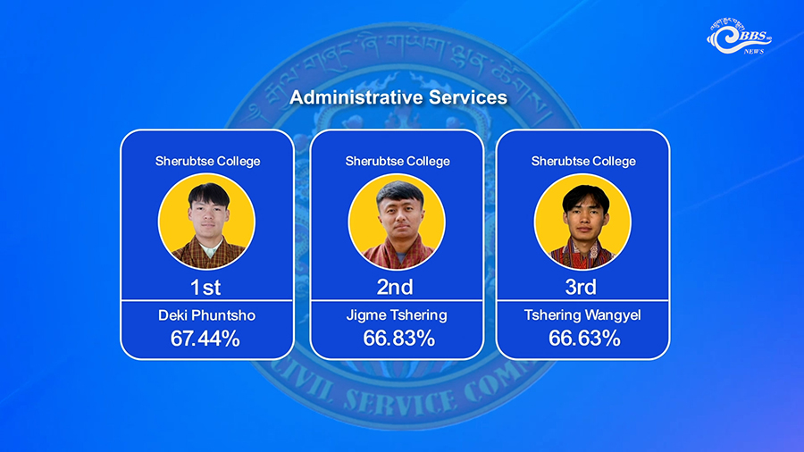 In the Administrative Services category, Deki Phuntsho from Sherubtse College, topped the category with 67.44 per cent.