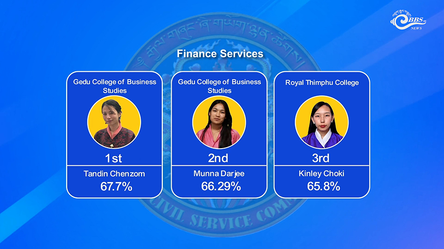 Tandin Chenzom from Gedu College of Business Studies scored the highest with 67.7 per cent in the Finance Services category.