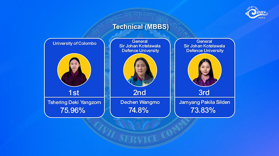 In the Technical (MBBS) category, Tshering Deki Yangzom from University of Colombo in Sri Lanka achieved the highest score of 75.96 per cent.