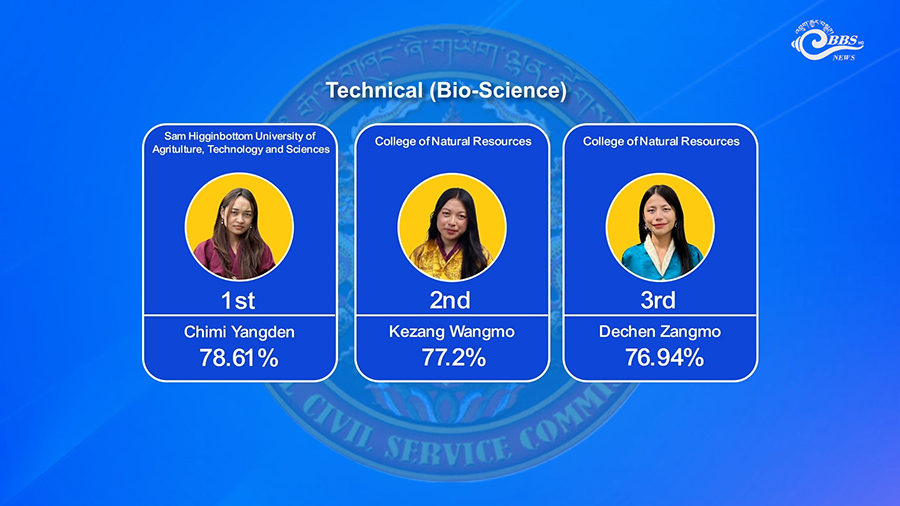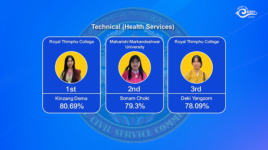 Similarly, in the Technical (Health Services) category, Kinzang Dema from the Royal Thimphu College topped the category with 80.69 per cent.