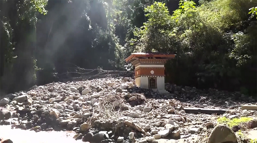 The district has allocated Nu 6 M in the 2025–2026 financial year to lay water pipes. However, before the work could progress, the infrastructure at the water source was completely buried by the flood in October. The district disaster team carried out a damage assessment and submitted the report to the Department of Disaster Management.