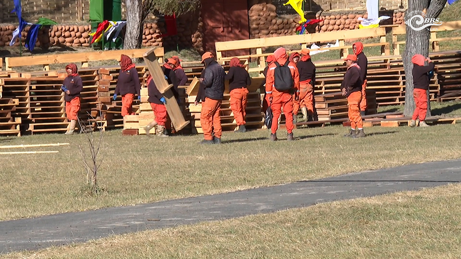 The palace, now functioning as a museum, has taken on a new look. Hundreds of De-suups, police personnel, army officers, monks, and local volunteers are on site. They are building key structures and arranging seating for more than 30,000 people.