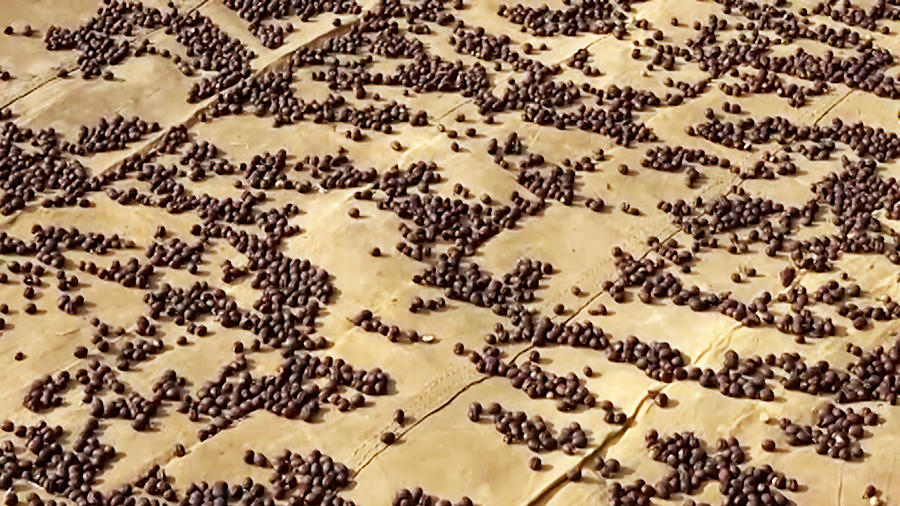 The simple drying process helps preserve the quality before storage. Once dried, the cherries can be stored safely until sale. The dried beans are later collected and packed in sacks.