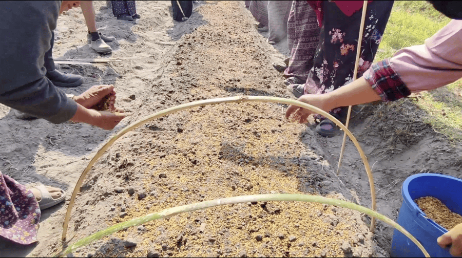 In Khamaedthang, farmers can be seen joyfully sowing seeds on well-prepared nursery beds to raise paddy saplings. The task which is usually laborious and exhausting, especially in the absence of a reliable irrigation water, has turned into a pleasant experience this season.