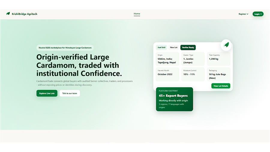 The Himalayan Commodity Exchange will function as a business-to-business web application, allowing producers, aggregators, and exporters to connect in a secure and professional environment.