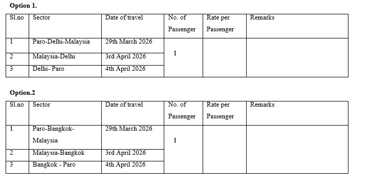 The Bhutan Broadcasting Service corporation would like to invite Sealed quotation for the Issuance of Air ticket from the established and reliable Bhutanese Ticketing agents for the following sectors.