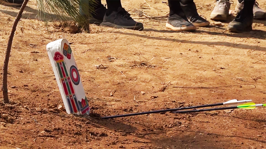 Unlike other archery matches, this competition uses small targets measuring about one foot in height and just over five inches in width. Even skilled archers rarely hit the targets, and some players finish the day without a single hit.