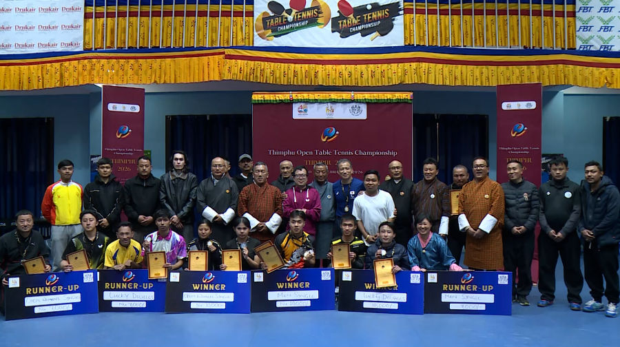 The four-day Thimphu Open Table Tennis Championship concluded today, with more than 60 participants competing across five categories. The event was organised by the Bhutan Table Tennis Federation to commemorate 40 years of diplomatic relations between Bhutan and Japan.
