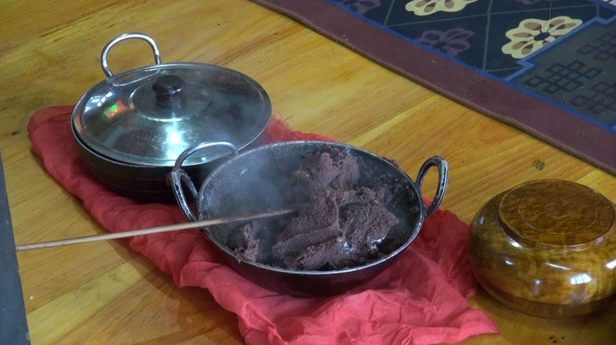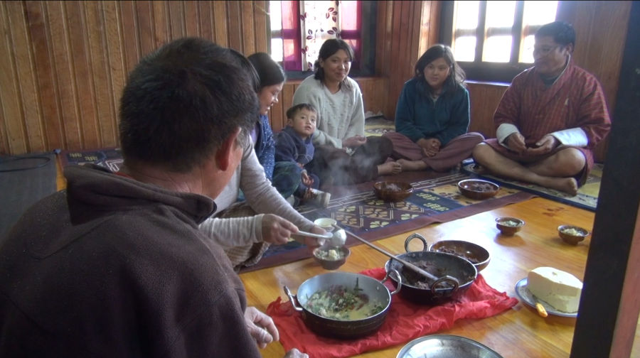 A family in Tarphel Chiwog in Bumdeling gewog shows how millet dough is prepared.