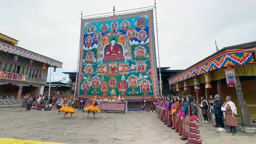 The festival concludes with the unfurling of the sacred Thongdrel and the display of holy relics to the public.