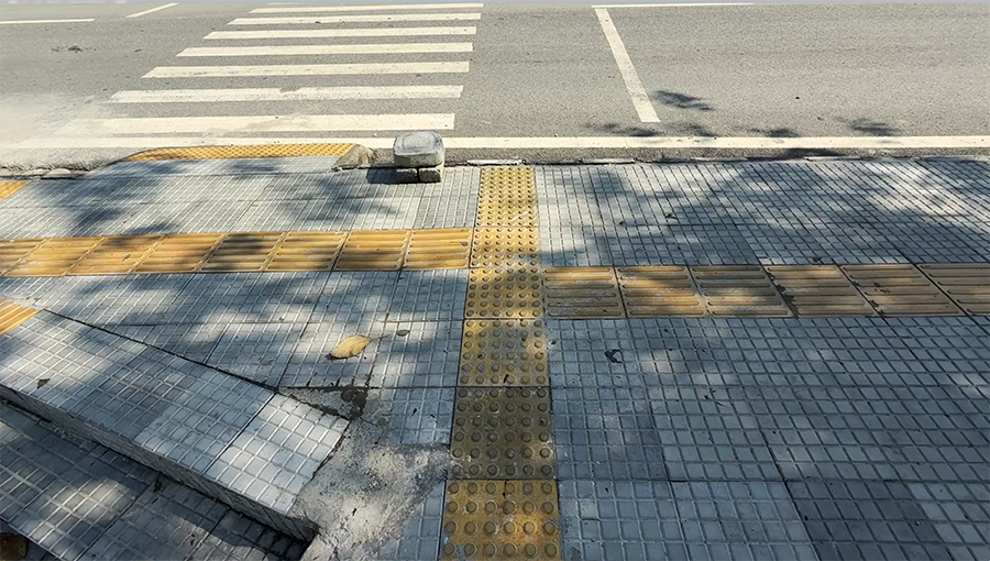Along several footpaths in the town, yellow tiles have been laid in a continuous line. At first glance, they may look like simple paving. But for persons with disabilities, especially those who are visually impaired, they are an essential guide. These are called tactile tiles. They have raised patterns that help people find their way.